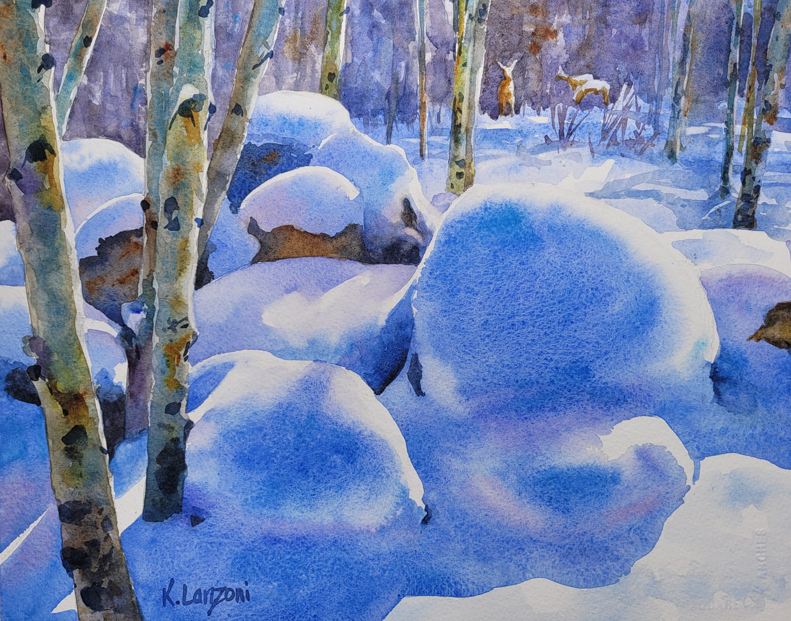 In this class, we will work on composition, values and colors of a winter landscape scene.